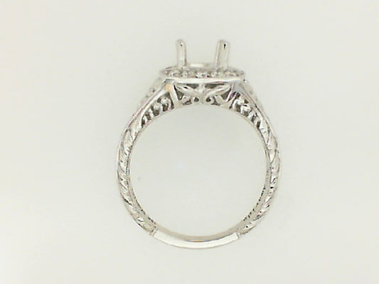 White Gold Engraved G/H Diamond Halo Engagement Ring