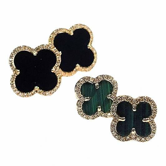 Yellow Gold Round Abalone and Diamond Stud Earrings