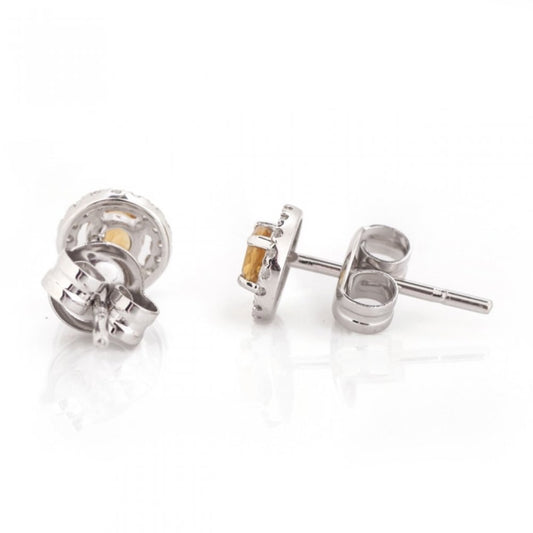 Yellow Gold Round Diamond Screw Flat Back Earrings