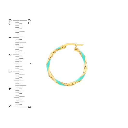 Yellow Gold Enamelled Twisted Hoop Earrings