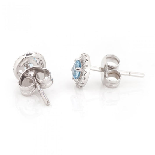 White Gold Pear Blue Topaz and Diamond Lever Back Earrings