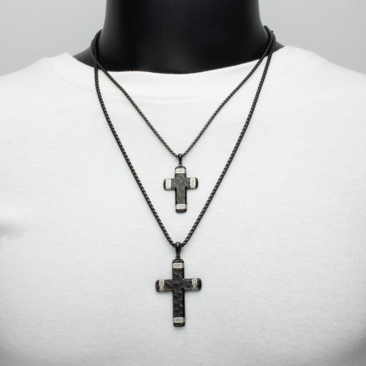 Black and White Stainles Steel Cross Pendant with Lab Grown Diamond Accents