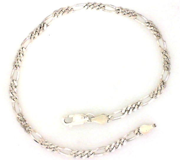 Sterling silver 4mm figaro chain, rhodiumed - 9.5"