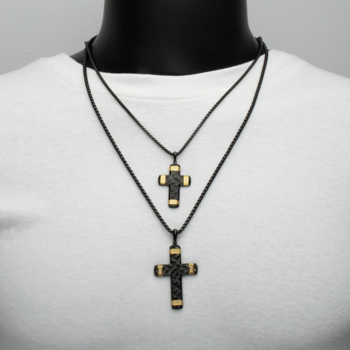 Black and Gold Stainless Steel Cross Necklace with Lab Grown Diamond Accents
