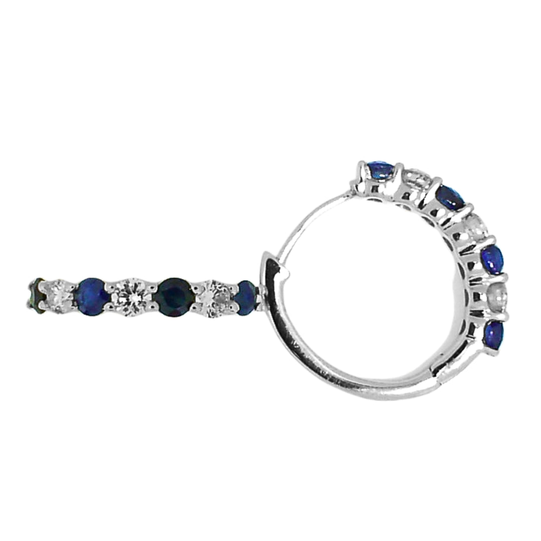 White Polished 14 Karat Hoop Earring With 6=0.40Tw Round Diamonds And 8=0.70Tw Round Sapphires
