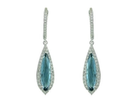 Statement Making Long Tear Drop Blue Topaz Surrounded By A Row Of Brillaint Diamonds Suspended From A Line Of Diamonds And Secured By A Safety Latch