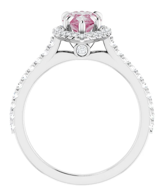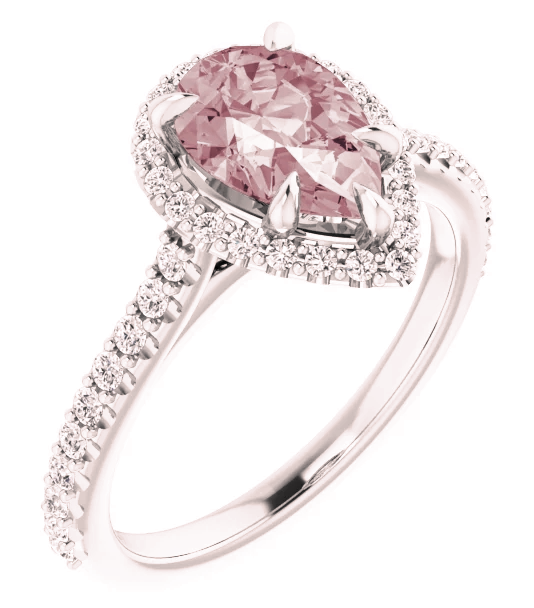 White Polished 14 Karat Halo Ring Size 8 With One 1.25Ct Pear Morganite And 44=0.35Tw Round H/I Si2 Diamonds