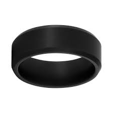 Black Ceramic Sandblast Beveled Edge Wedding Band Size 11.5