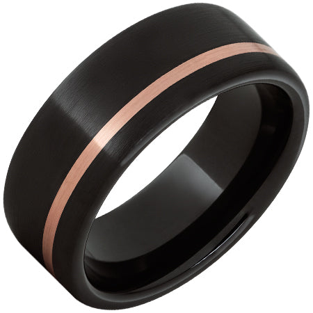 Black Ceramic Satin 14k Rose Gold Inlay Wedding Band Size 10, 8mm