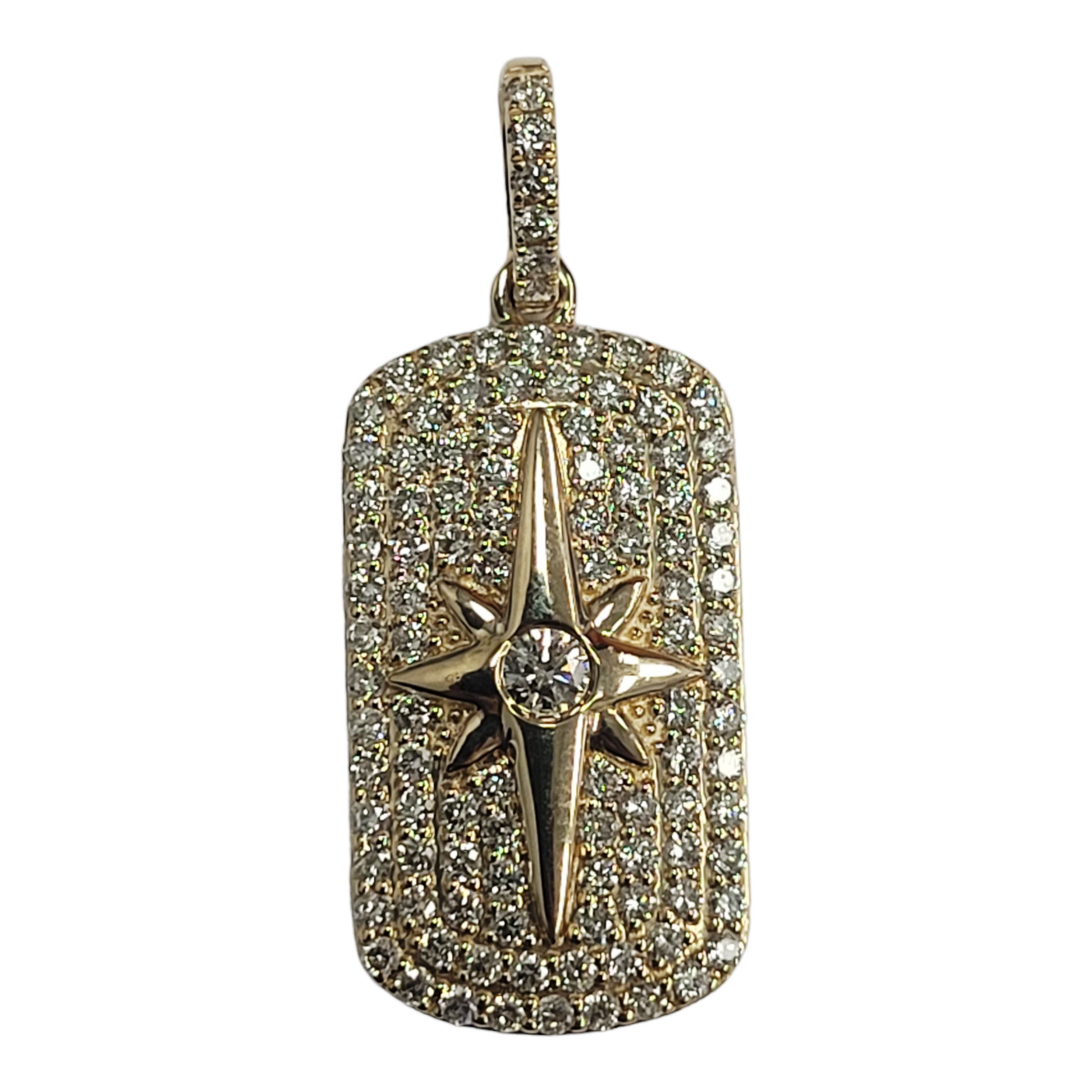 Accentuate your elegance with this beautiful diamond pendant. Crafted from 14 karat yellow gold with 0.72 carats of round diamonds set in a unique dog tag style, this pendant is sure to make a bold statement.
