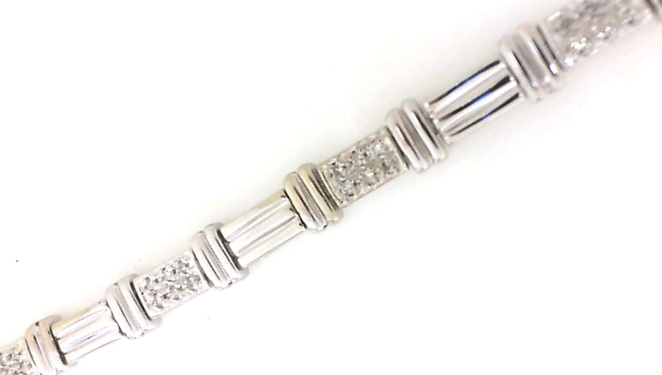 White Polished 14 Karat Bar Vintage Bracelet Length 7 With 42=0.50Tw Round J/K I1 Diamonds