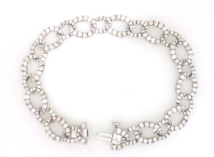 Lady's White Polished 14 Karat Pave Curb Bracelet Length 7 With 286=4.91Tw Round Diamonds