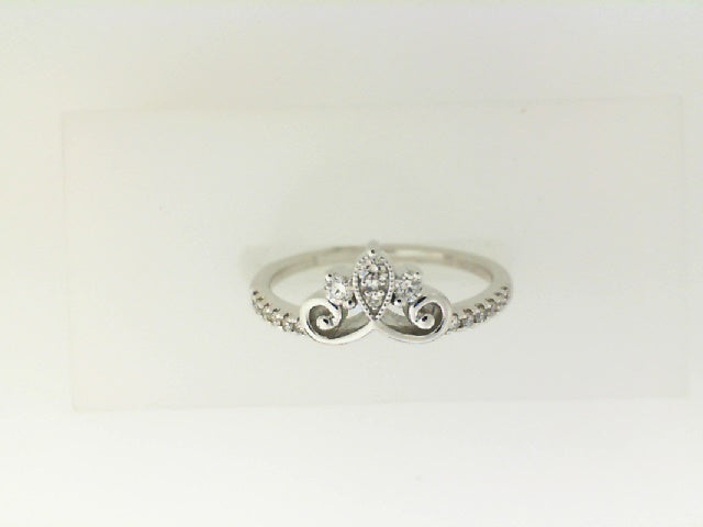 This stunning diamond wedding band is sure to stun with its dazzling design. Crafted from 14 karat white gold, the unique crown shaped ring is adorned with 16 dazzling round diamonds totaling 0.16 carats.