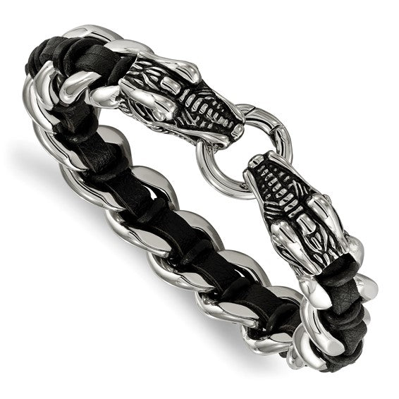White Stainless Steel Dragon Bracelet wtih Leather Accent