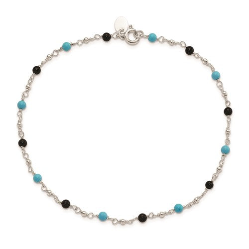 Sterling Silver Onyx/Turquoise Beads Anklet