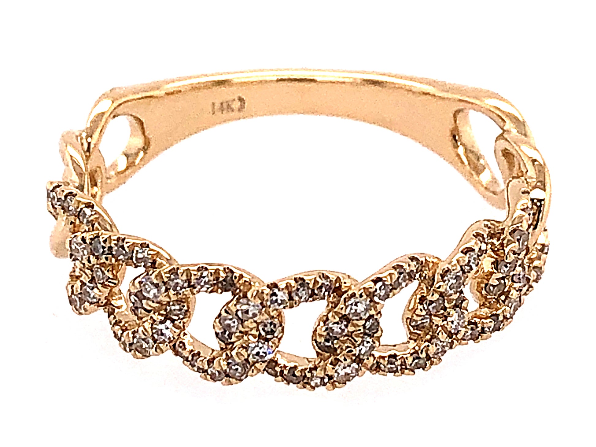 Yellow Polished 14 Karat Pave Cuban Ring Size 6.75 With 0.32Tw Round Single cut H/I I1 Diamonds